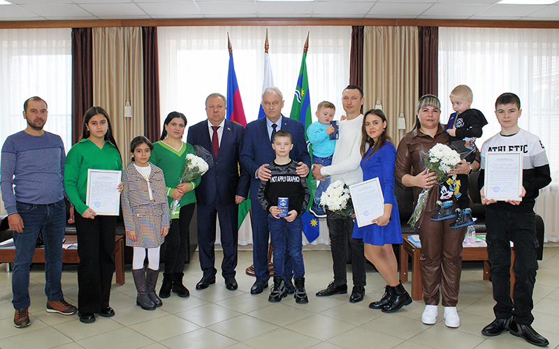 Очередное планерное совещание в администрации района началось с вручения денежных сертификатов молодым семьям Абакумовым, Сергеевым и Сагоян.