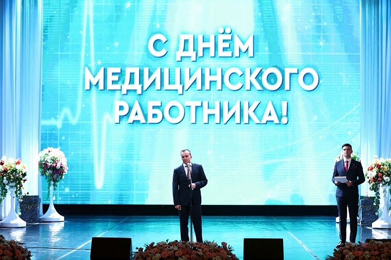 – День медицинского работника – это праздник и повод сказать «спасибо» людям в белых халатах. Брать ответственность за другого человека – это всегда подвиг, а вы это делаете каждый день, опираясь на профессионализм, опыт и талант, через свою душу и сердце пропускаете чужую боль. Сегодня в крае 70 тысяч врачей, медсестер, фельдшеров и санитаров. Мы гордимся нашим современным и высокотехнологичным здравоохранением. Одновременно строим 19 поликлиник, ВОПы и ФАПы. Готовимся к открытию второй очереди Краевой клинической больницы им. Очаповского. Направляем значительные средства ради того, чтобы жители региона имели все необходимое для сохранения здоровья, полноценно жили и трудились. Спасибо, что помогаете в этом. С вами вместе мы отвечаем за благополучие кубанцев, – подчеркнул Вениамин Кондратьев.