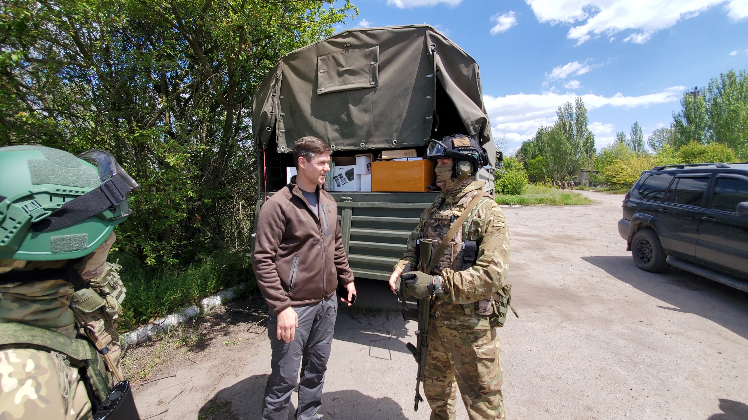 «С ребятами этого подразделения знаком с прошлого года по Рубежному и Северодонецку, — сказал Сергей Алтухов. — Не раз выручали нашу команду с охраной пунктов горячего питания, помогали, когда украинская сторона накрывала огнем наши гуманитарные колонны. Сейчас подразделение переброшено на другое направление. Уверен, что привезенные спецсредства помогут ребятам успешно выполнить стоящие перед ними боевые задачи».