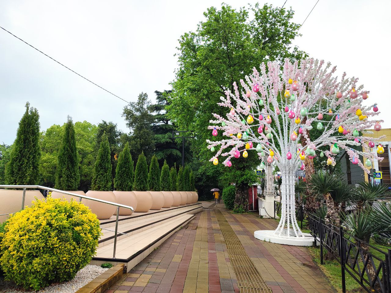 В Хостинском районе к Пасхе оформили сквер «Фестивальный» и парк имени Фрунзе. А на территории православных храмов района прихожан будут радовать праздничные экспозиции в виде больших пасхальных яиц. В Адлерском районе украшены улицы Кирова и Демократическая. В Лазаревском – набережная реки Псезуапсе, сквер Кирова и площадь перед кинотеатром «Восход».