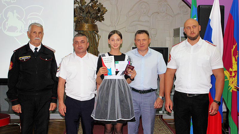 В Курганинском историческом музее в этот прекрасный осенний день состоялось торжественное вручение паспортов гражданам, достигшим 14-летнего возраста. Семеро молодых и лучших учащихся школ Курганинского района в торжественной обстановке получили свой первый документ из рук полицейских, члена общественного совета при ОМВД России по Курганинскому району, представителя районной администрации и атамана Курганинского района. Представитель администрации Курганинского района Дмитрий Шунин поздравил школьников со знаменательным событием и отметили, что с этого момента они становятся полноправными гражданами своей страны, а это накладывает и определенные обязанности, которые необходимо соблюдать.