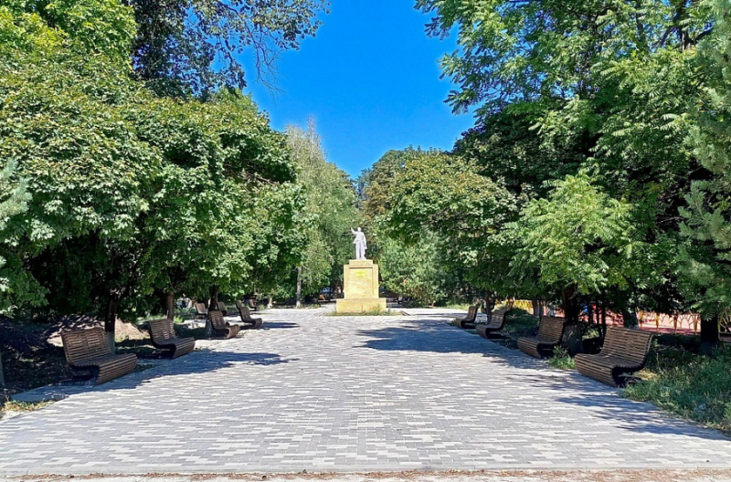 Парковую зону в центральной части станицы Спокойной благоустраивают в рамках национального проекта «Жилье и городская среда».