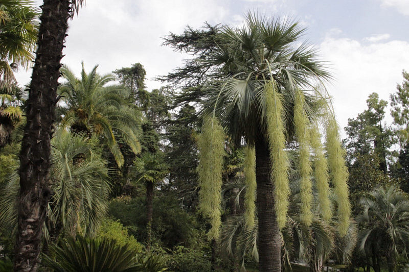 Как сообщает пресс-служба Сочинского нацпарка, сейчас в дендропарке цветет Эритея вооруженная, ее также называют Голубая или Мексиканская пальма. Ее свисающие соцветия достигают 5 метров в длину, что является основным отличием от других пальм, растущих в Сочи. Название «Эритея» было дано пальме американским ученым-ботаником Серено Ватсоном в честь небольшого острова в заливе Кадис.