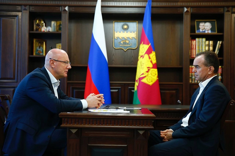 Вице-премьер и губернатор Вениамин Кондратьев обсудили ресурсный потенциал региона Заместитель Председателя Правительства РФ Дмитрий Чернышенко провел в Анапе рабочую встречу с губернатором Краснодарского края Вениамином