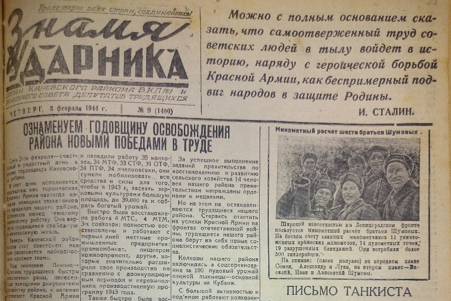 5 февраля – День освобождения Каневского района от немецко-фашистских захватчиков