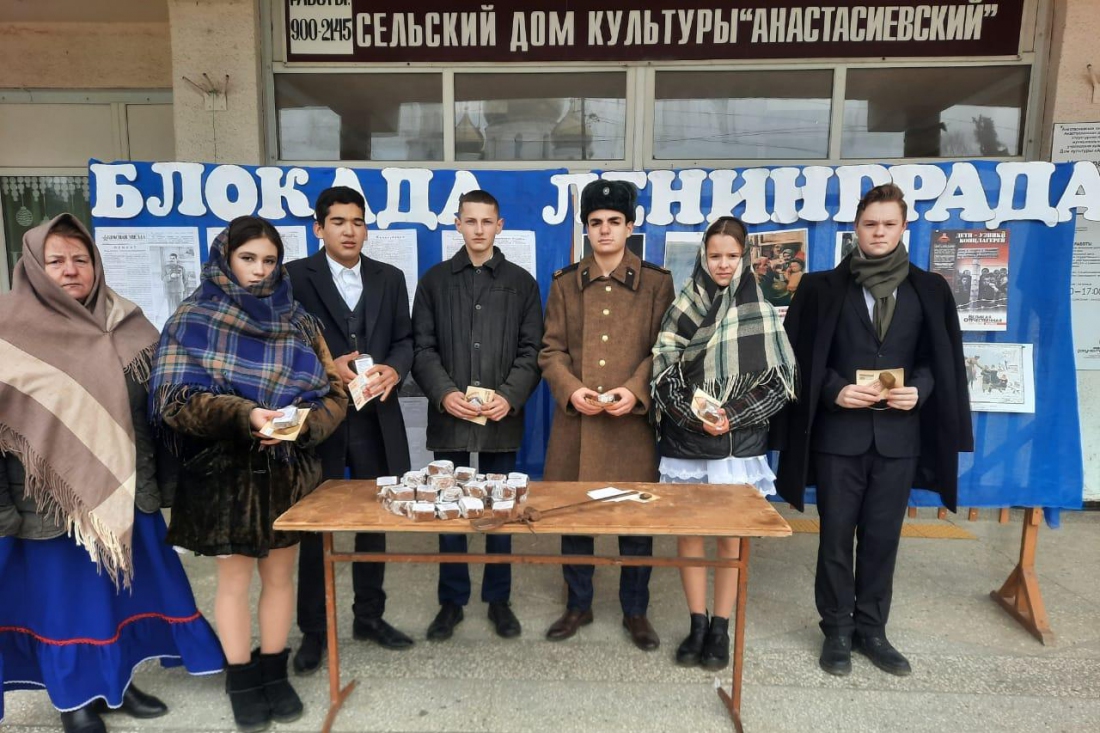 Волонтеры вместе с депутатами раздавали прохожим по 125 гр хлеба с информационными листовками. Библиотекарь сельского Дома культуры «Анастасиевский» Кузнецова Г.И. рассказала присутствующим о блокаде Ленинграда: прозвучали цифры погибших жителей города до войны и после, даты начала и полного освобождения города от фашистской блокады.