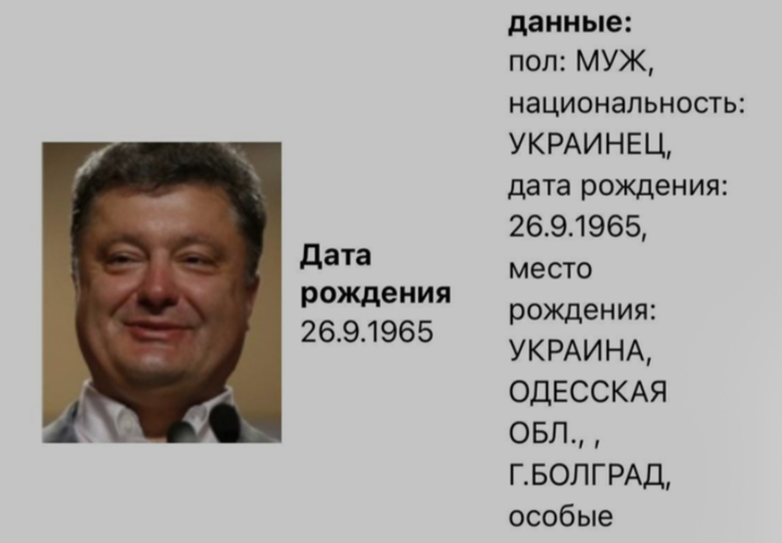 Согласно базе данных розыска МВД РФ, Петр Порошенко 1965 года рождения, уроженец города Болграда Одесской области, разыскивается по статье Уголовного кодекса Российской Федерации. Другие подробности не известны.