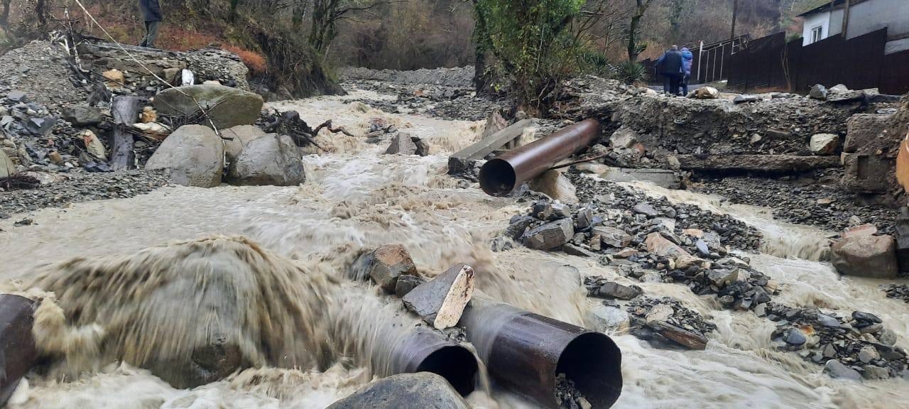 На кадрах видно, что бурным потоком воды разметало в стороны железные трубы и бетонные блоки.