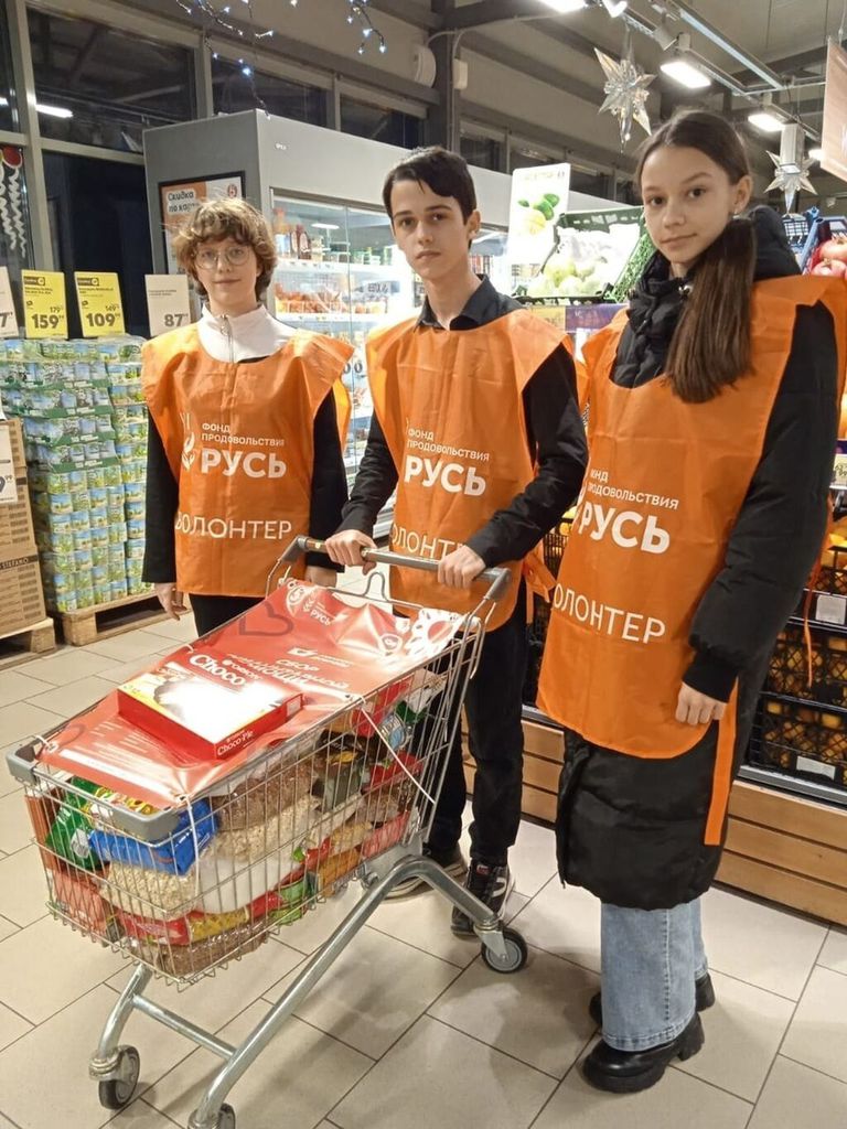 Как это работает: посетители магазина покупают продукты с длительным сроком хранения и передают волонтерам за линией касс.