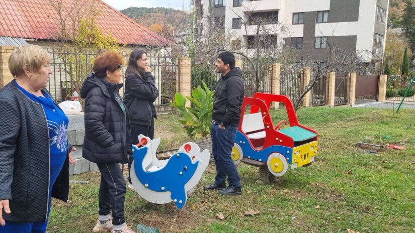 По просьбе домкома Тамары Салимовой депутаты Городского Собрания Сочи по избирательному округу № 14 «Дагомысский» Илья Стопченко, Артур Аракелян, Станислав Болдырев и Роман Напсо перераспределили средства в городском бюджете на исполнение наказов и направили их на реконструкцию и обустройство детской площадки в районе дома № 80 по ул. Армавирской в п. Дагомыс.
