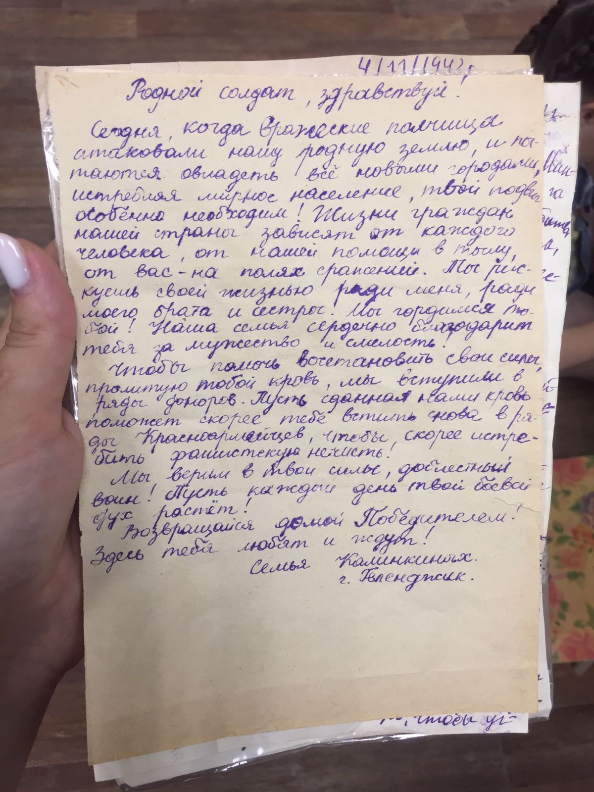 - Было очень трепетно, детки познакомились с бойцом СВО Михаилом, и мы подарили ему подарки от группы. Мы вязали накасочники, резали ткани, рисовали и писали письма для бойцов, - рассказала Вероника Иванникова, представитель волонтёрского объединения. - Благодаря поддержке Музея обороны города Туапсе ребята увидели два вида касок, копии писем периода Великой Отечественной войны и научились складывать треугольником свои «весточки» для бойцов.
