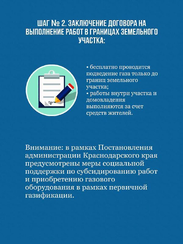Все больше жителей стремятся подвести газ к границам своего земельного участка. В информационных карточках напоминаем, что нужно для этого сделать – шаг за шагом.