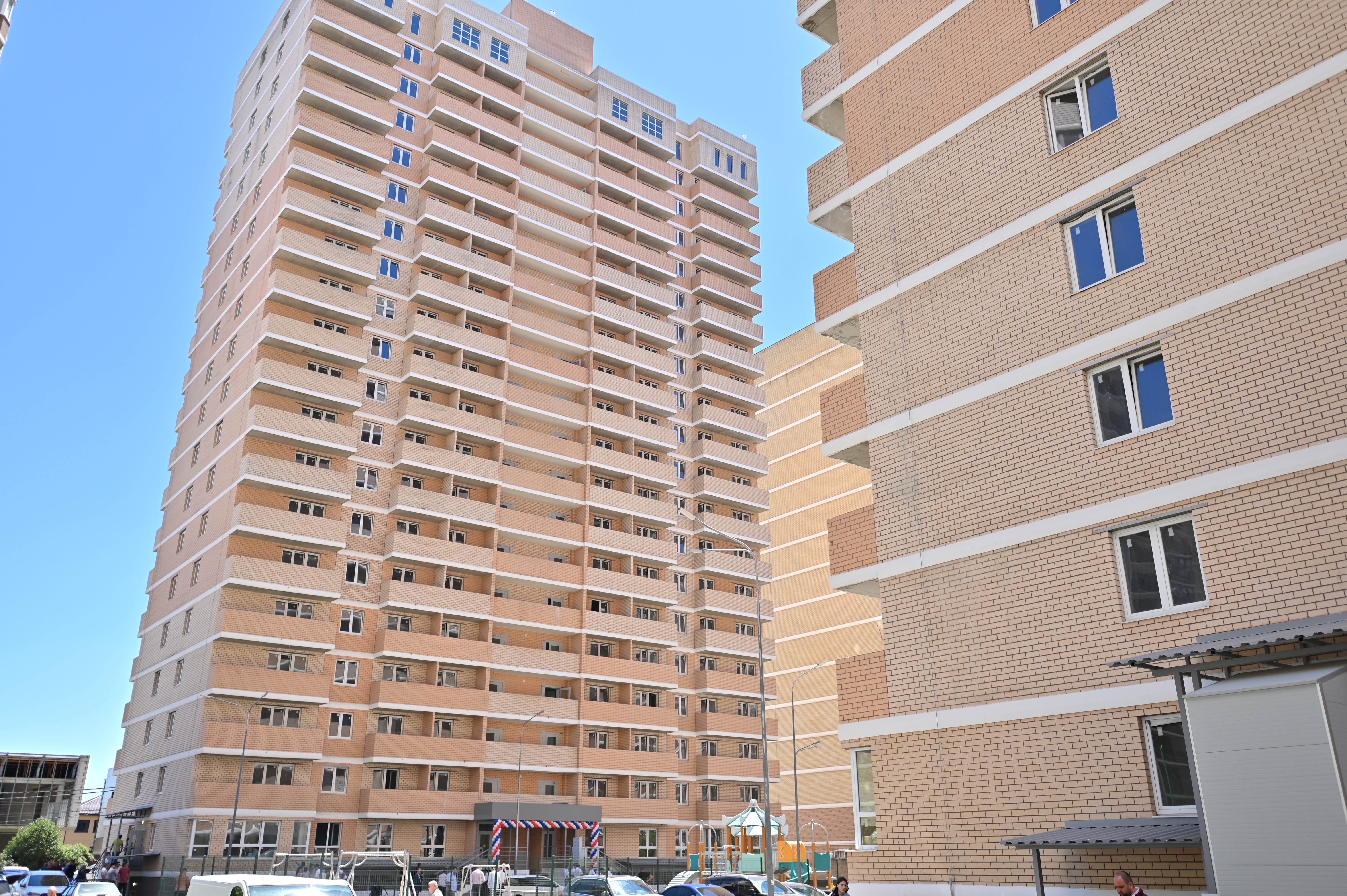 Первыми новосёлами стали 14 участников долевого строительства. Этого дня они ждали с 2016 года. Всего в течение месяца участникам строительства передадут 563 квартиры в трёх 20-этажных домах на ул. им. Жигуленко. Глава Краснодара Евгений Наумов отметил, что первоначальный застройщик не справился с поставленной задачей, и завершение строительства объекта осуществлял региональный Фонд защиты прав дольщиков.