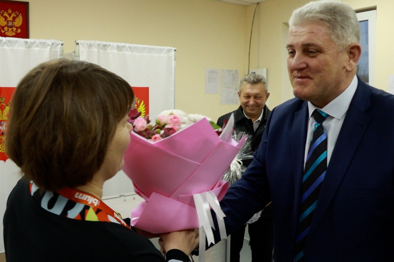 Поздравить председателя УИК 17-04 Анну Мягкову ее с праздником, отметить важность работы членов избирательных комиссий и пожелать имениннице всего наилучшего приехали глава района Александр Герасименко,