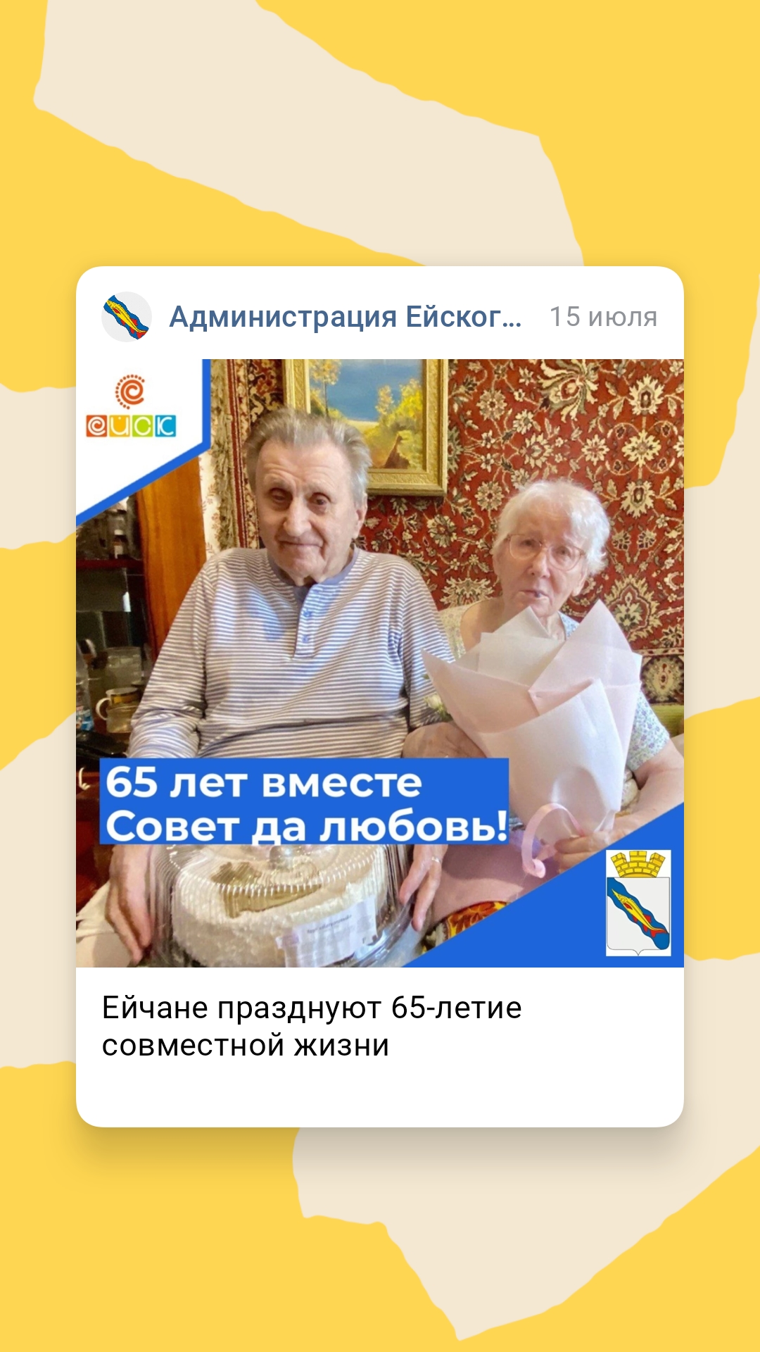 Ейчане празднуют 65-летие совместной жизни