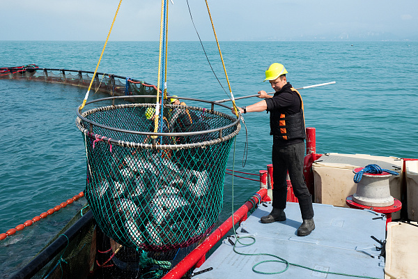 Мэр посетил акваферму, оборудованную в море на удалении пяти километров от берега в районе Хосты. Она работает с 2021 года. Сейчас здесь расположено 12 садков. Оборудование полностью экологично, не несет никакой угрозы для морской экосистемы.