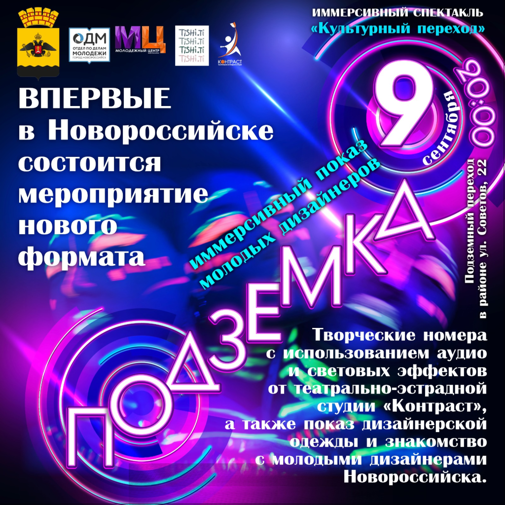 09 сентября в 20:00 в подземном переходе на улице Советов, 22 впервые пройдет уникальное мероприятие – иммерсивный показ работ молодых дизайнеров «Подземка».