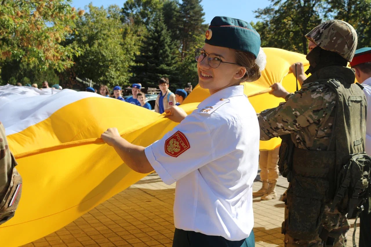 В финале праздника жители Краснодара выразили свою привязанность к городу. На площади перед Выставочным залом Боевой Славы был развернут флаг кубанской столицы, что символизировало единство и гордость местных жителей.