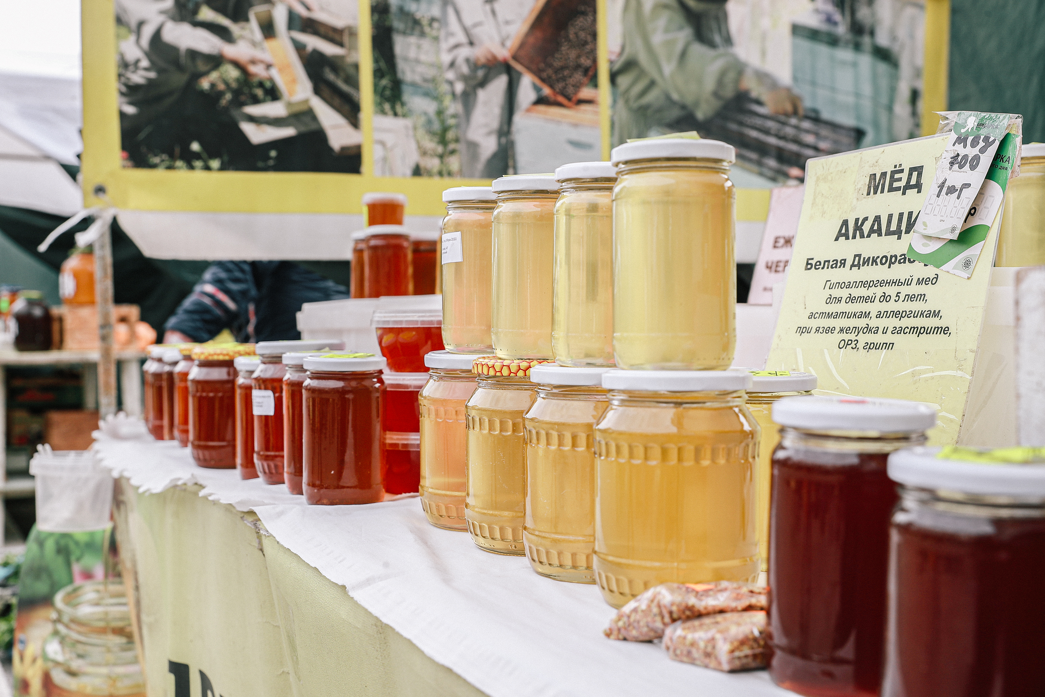Сегодня купить свежие продукты можно на 12 торговых площадках. Жители и гости Краснодара могут пополнить домашние запасы мёда — пасечники со всего региона представили на ярмарках свою продукцию.