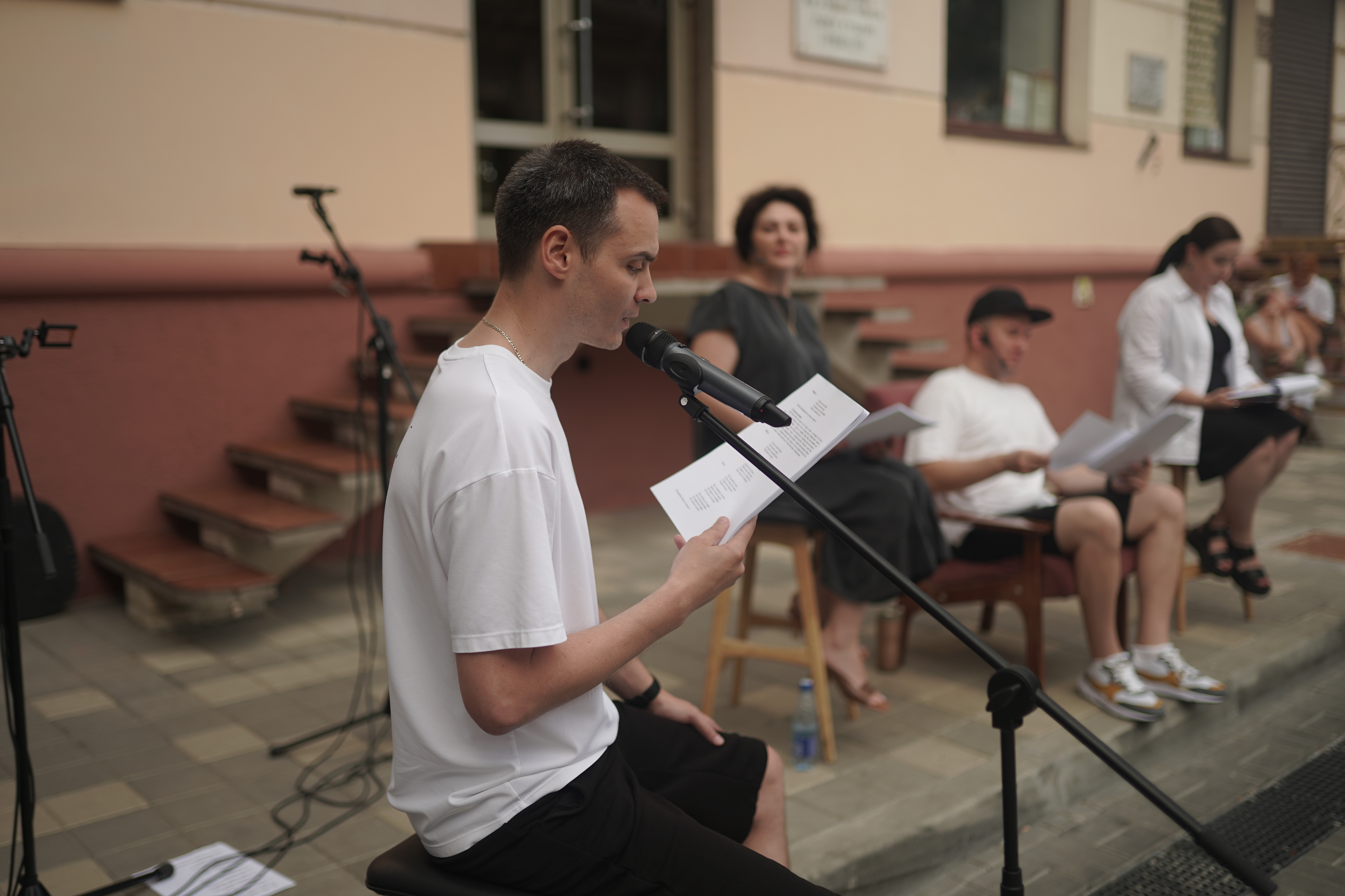 Пьесу «Про Федота-стрельца, удалого молодца» на участке Чапаева от Рашпилевской до Красной этим вечером прочитали краснодарские артисты театра и кино Александр Киселёв, Олеся Никифорова, Андрей Салтыков, Андрей Сафронов и Ксения Цыбульникова.