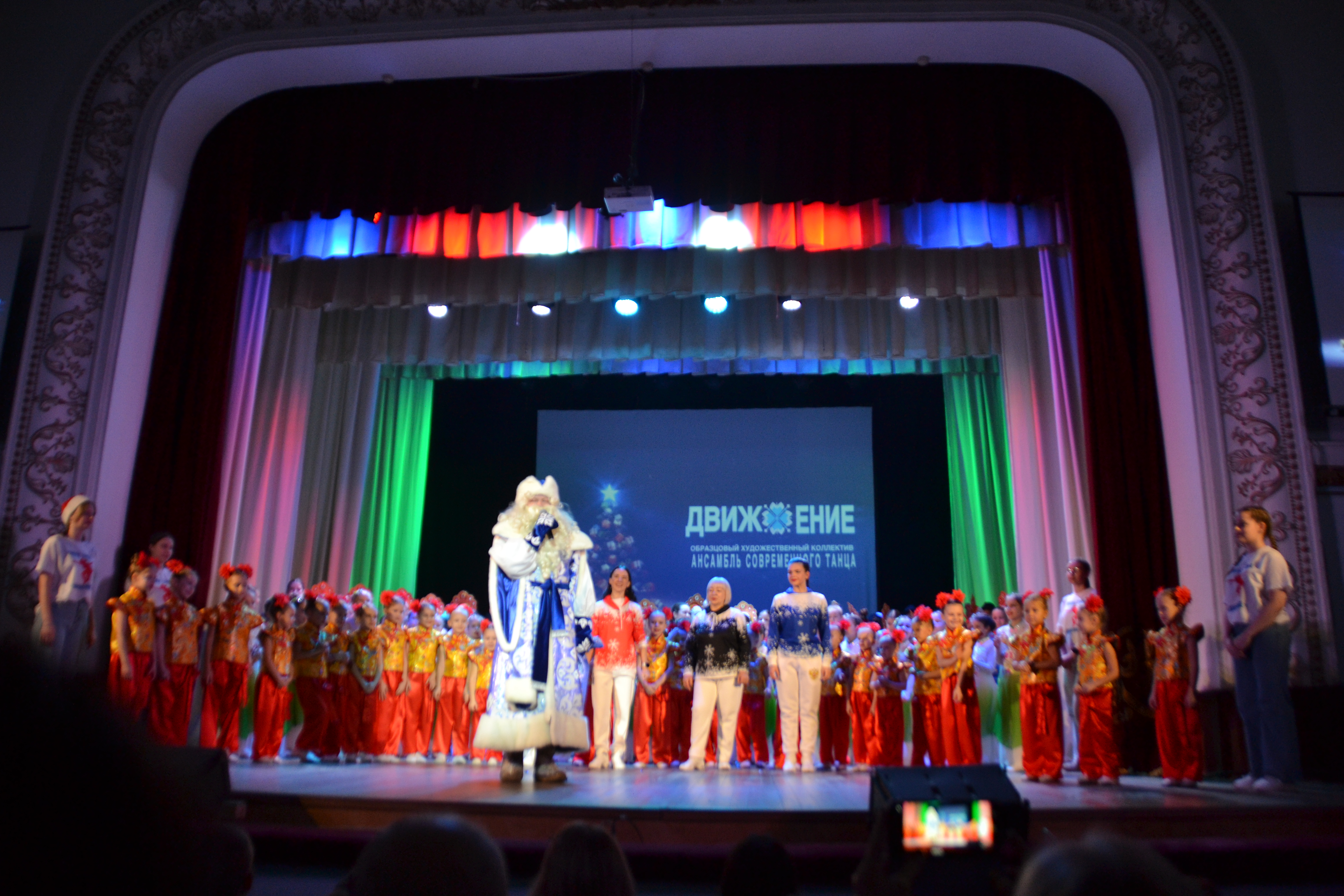 Зал ГДК во время двухчасового концерта не смолкал. На сцену вышли и самые младшие танцовщики, и уже выпускники, и мамы. Завершился праздник танца поздравлением Деда Мороза и, конечно, новогодними подарками для "движенцев".