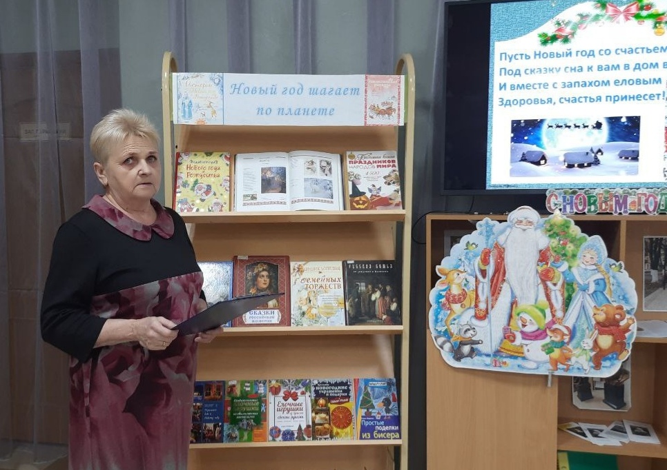 Для читателей ЦГБ им. А.В. Луначарского в празднично украшенном читальном зале было представлено видеосообщение об истории празднования Нового года в России. На Новый год принято ставить и украшать ёлку, дарить друг другу подарки и подводить итоги. Это любимый праздник большинства взрослых и детей.