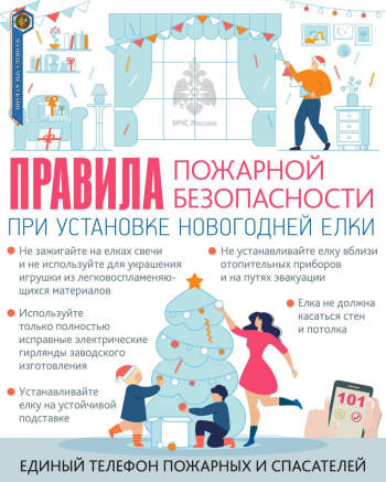 Елку следует устанавливать на устойчивую подставку и подальше от отопительных приборов.Для освещения елки необходимо использовать только исправные электрические гирлянды заводского изготовления.