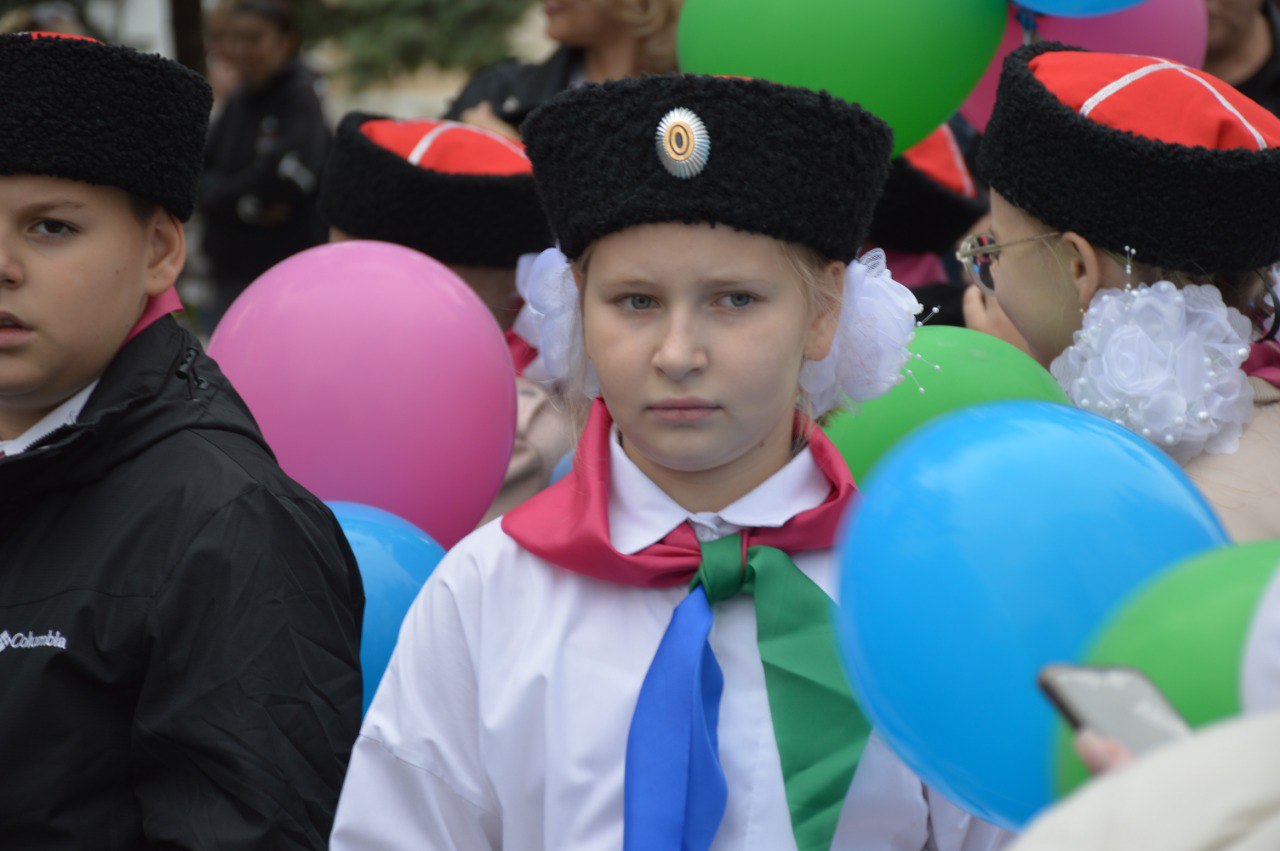 По центральной улице станицы Старощербиновской прошли юные казачата и казаки Щербиновского районного казачьего общества.