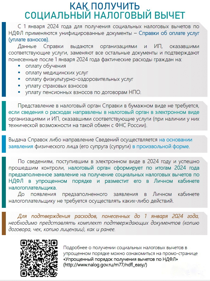 С 1 января 2024 года для получения социальных налоговых вычетов по НДФЛ будут применяться унифицированные документы – справки об оплате услуг (уплате взносов).
