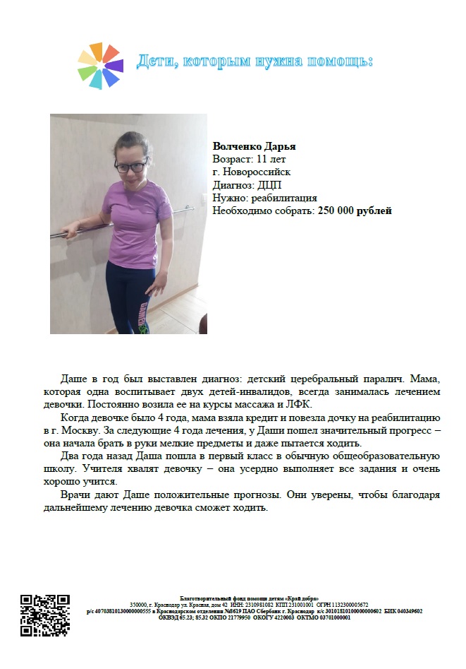 В числе ребят, помощь которым можно оказать в рамках акции «1 Минута на добро», — трое детей из Новороссийска. Их истории можно прочитать в приложении.