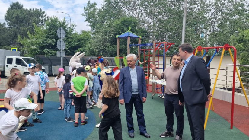 Депутаты Городского Собрания Сочи, члены ВПП «Единая Россия» Степан Кагосян и Родион Цырульник вместе с главой администрации Хостинского района Иваном Савиным приняли участие в открытии детской площадки и футбольного по