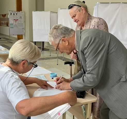 На избирательном участке № 12-47 в здании 30-й школы проголосовал за одного из кандидатов на должность главы Нововеличковского сельского поселения председатель совета ветеранов станицы Нововеличковской Юрий Михайлович Зубрицкий.