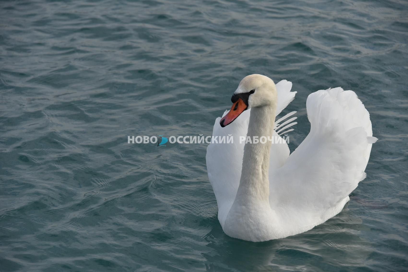 В Цемесской бухте в эти выходные денечки много лебедей, чаек.