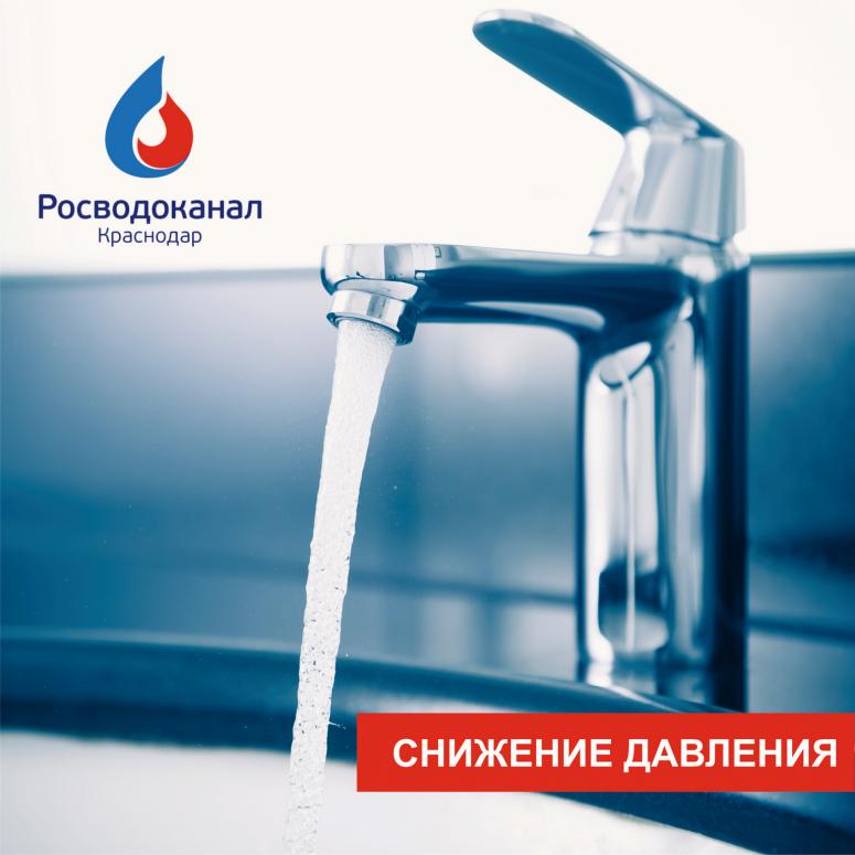 «Росводоканал Краснодар» предупреждает о снижении давления на сетях