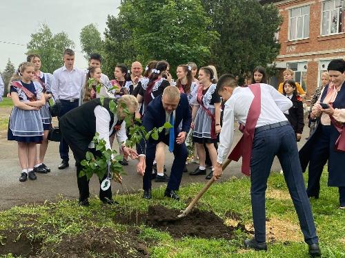 По традиции кусты сирени одиннадцатиклассники высадили в праздник Последнего звонка на территории школы.