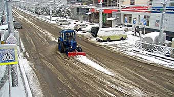 В ночь на понедельник на дорогах работали 37 единиц техники, на тротуарах, площадях, остановках, в парках — 15. Сотрудники городских служб посыпали тротуары и подходы к остановкам общественного транспорта песком.
