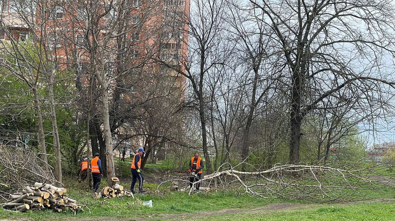 Фото: пресс-служба администрации Краснодара Подрядчик уже провёл работы по планировке территорий сквера, сейчас идёт вырубка аварийных и попадающих в зону строительно-монтажных работ деревьев.