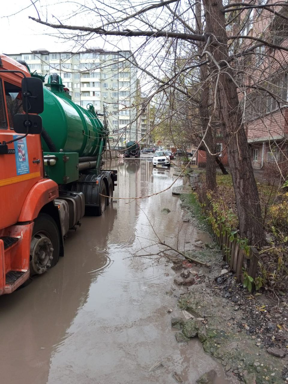 В Музыкальном микрорайоне Краснодара работает водооткачивающая техника