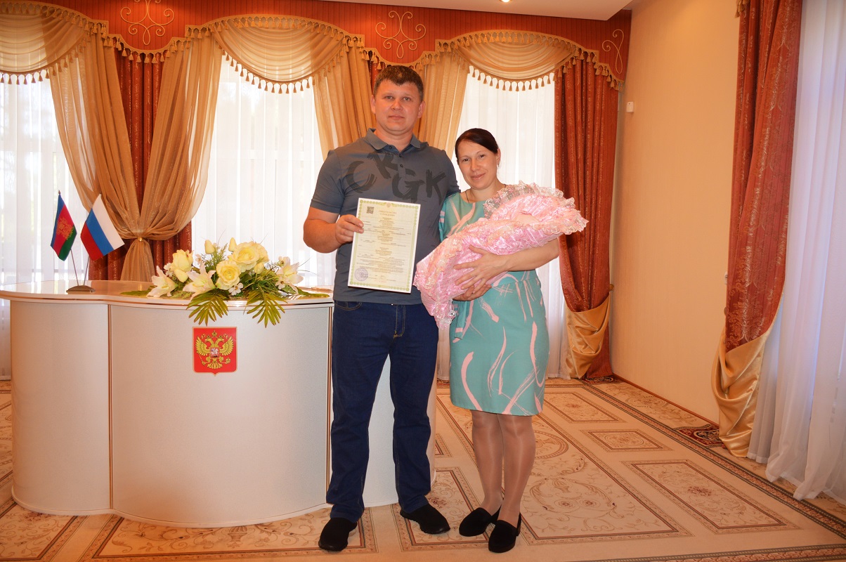 В Отделе ЗАГС Щербиновского района прошла торжественная государственная регистрация рождения пятого ребенка в семье Лозинского Антона и Эммы.