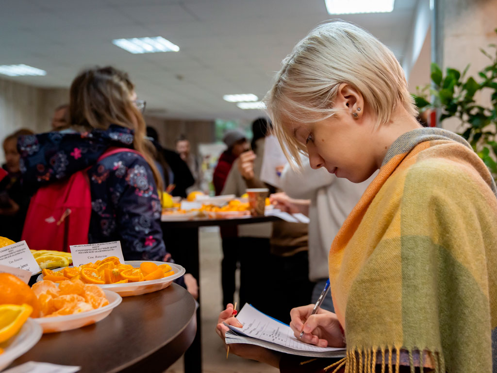 Гостям было предложено попробовать плоды и оценить их качества по нескольким пунктам. Это поможет селекционерам учесть необходимые нюансы в своей работе.