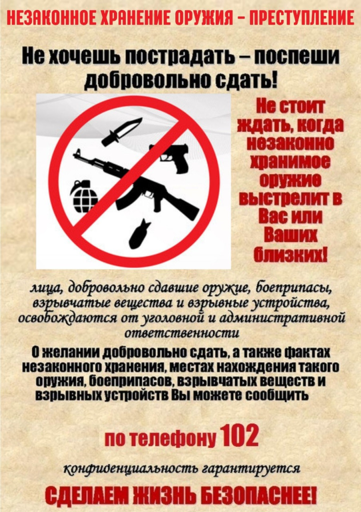 ВНИМАНИЕ! За добровольную сдачу незаконно хранящегося оружия положены денежные выплаты