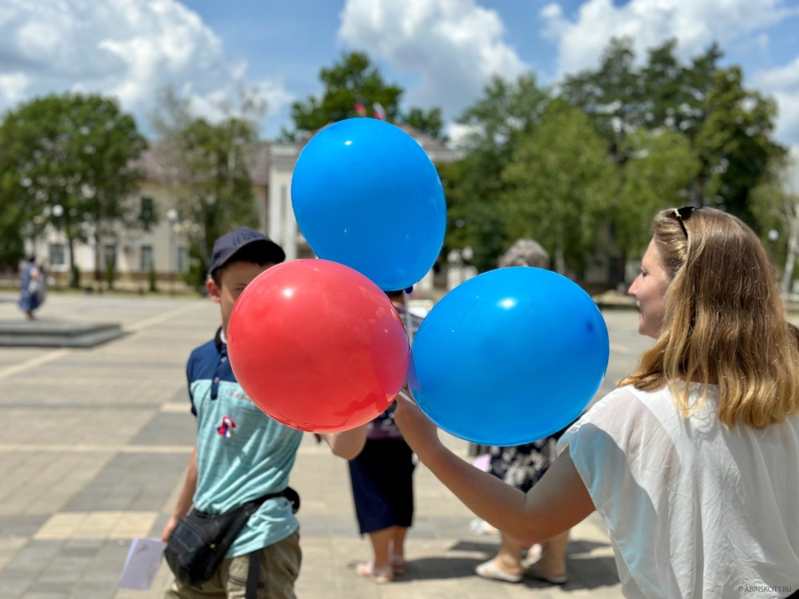 Специалисты МКУ «Центр по физической культуре, массовому спорту и работе с молодежью» Абинского городского поселения сегодня организовали и провели акцию «Воздушный триколор». Жителям и гостям города в честь Дня России в Центральном сквере раздали шары в цветах российского флага.