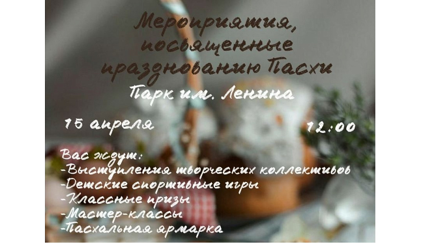 Муниципальное бюджетное учреждение «Парки Новороссийска» 15 апреля приглашает жителей и гостей города отметить Пасху в парке имени Ленина.