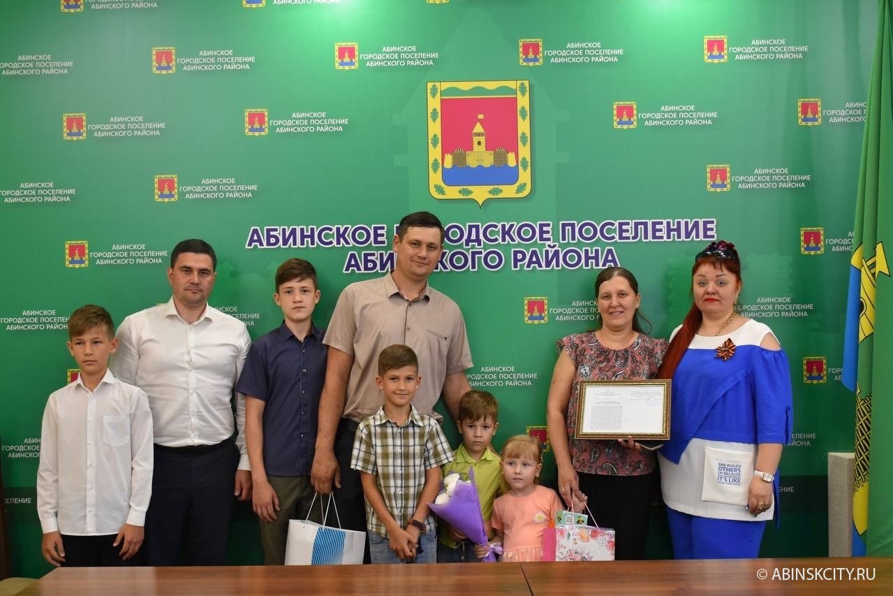 Сегодня состоялось торжественное вручение постановления администрации Абинского городского поселения о предоставлении в собственность земельного участка многодетной семье Сопран.