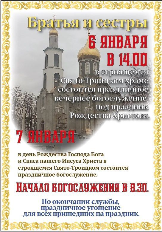 Расписание Богослужений в Свято-Троицком храме станицы Троицкой