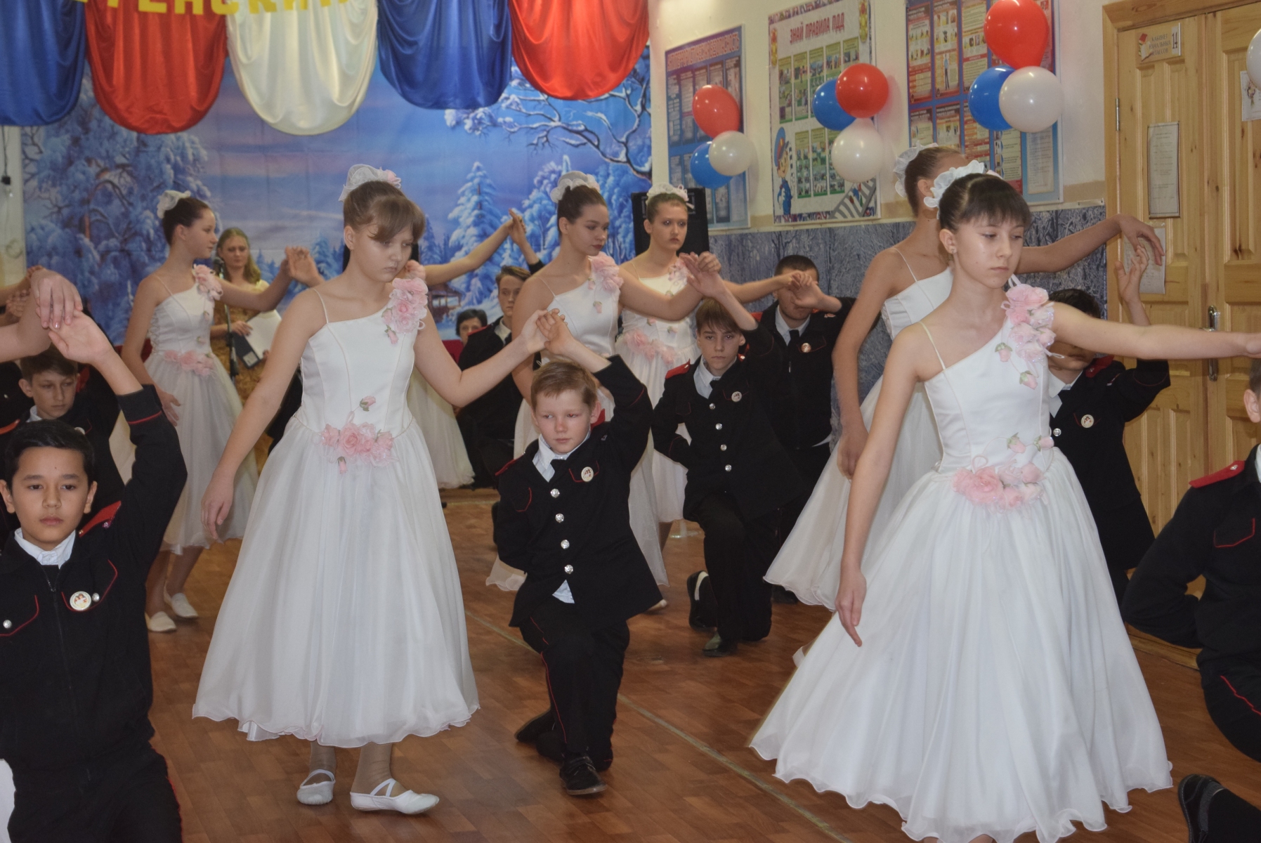 Юные казачата вместе с педагогами и наставниками подряд четвертый год устраивают в образовательном учреждении настоящий бал в честь одного из главных православных праз