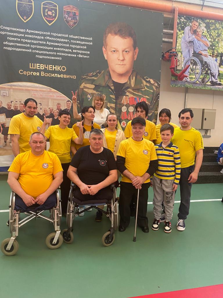 Председатель организации «Милосердие» Виталий Николаевич Кузьменко рассказал, что спартакиада была посвящена памяти председателя Армавирского городского общества инвалидов, ветеранов подразделений специального назначения «Вятич» подполковника Сергея Васильевича Шевченко. Она дала возможность людям с ограниченными возможностями здоровья продемонстрировать, что они готовы быть активными в любых сферах жизни: общественной, политической, творческой и, конечно, спортивной.