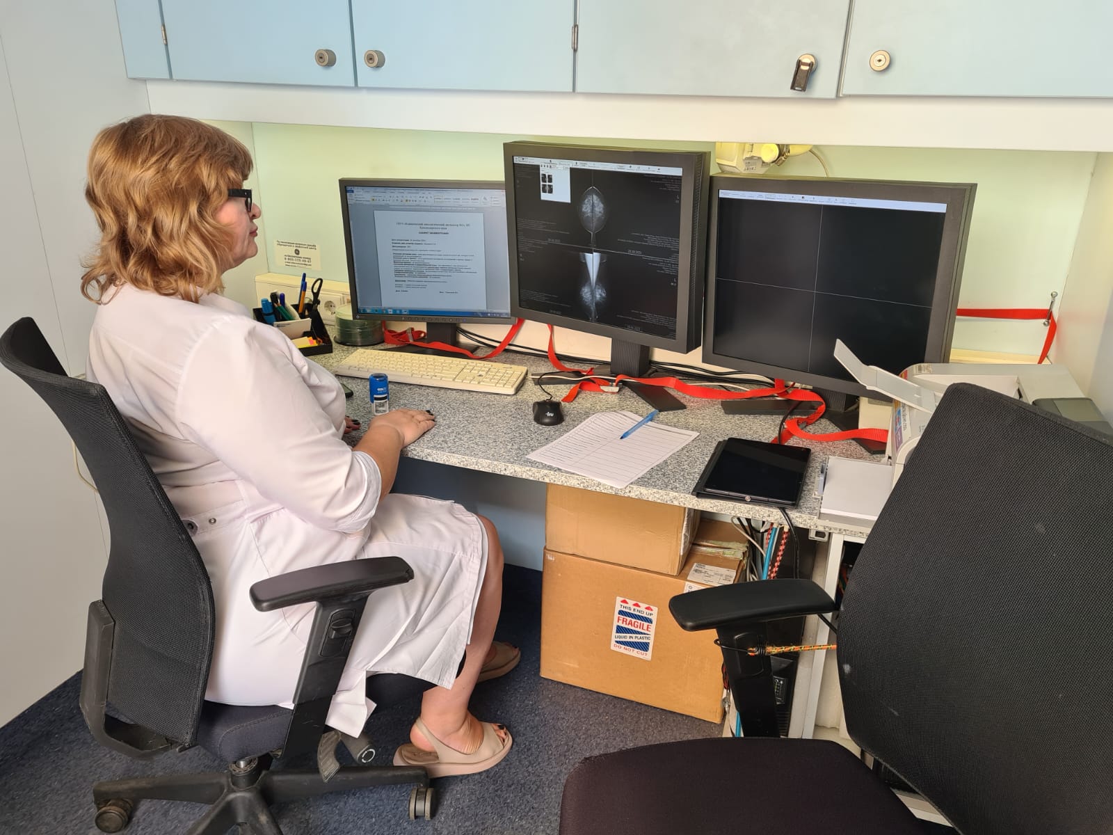 В поликлинике Абрау-Дюрсо консультативный прием вели онкодерматологи, онкопроктологи, онкогинекологи, маммологи, онкоурологи и врачи ультразвуковой диагностики. В передвижной маммографический комплекс направлялись женщины, у которых специалист обнаруживал признаки наличия узловых образований молочной железы.