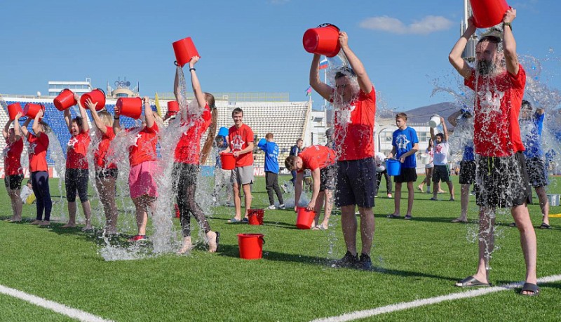 На «Центральном» стадионе города-героя прошло массовое обливание холодной водой. Активисты продемонстрировали, что они выступают «за» здоровый образ жизни, а также получили заряд положительных эмоций в теплый и солнечный февральский день.