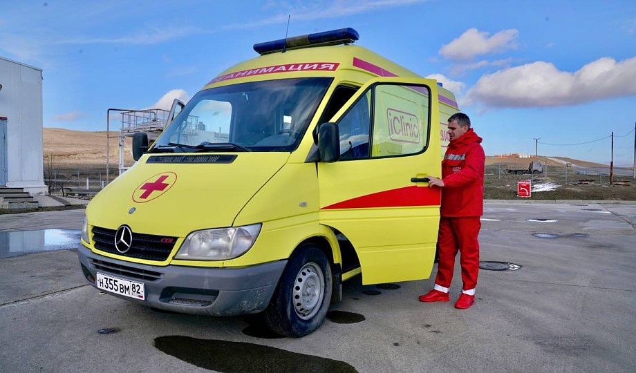 Бригада из двух фельдшеров и водителя посменно дежурит в порту Тамань и готова в любую минуту на любой производственный объект компании или доставить больного в клиники Темрюка, Анапы или Новороссийска.